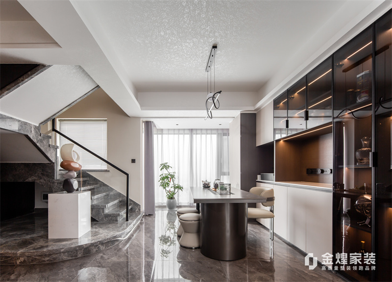 本案為意式風,自帶一種成熟的精英感,配色以沉穩大氣為主,黑白灰棕的深色系,少量色彩做為點綴。比起色彩上的花哨,更愿意回歸對質感和細節的追求。