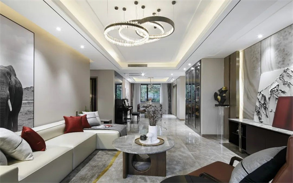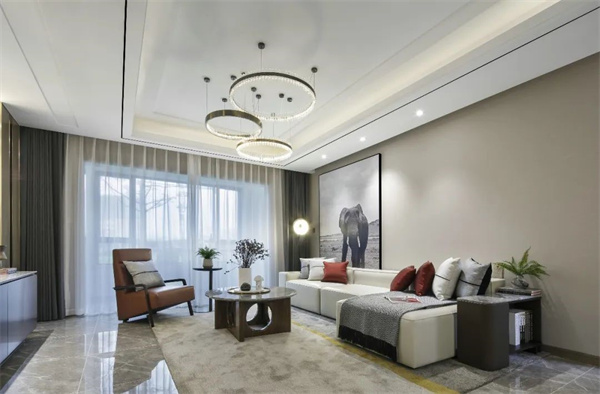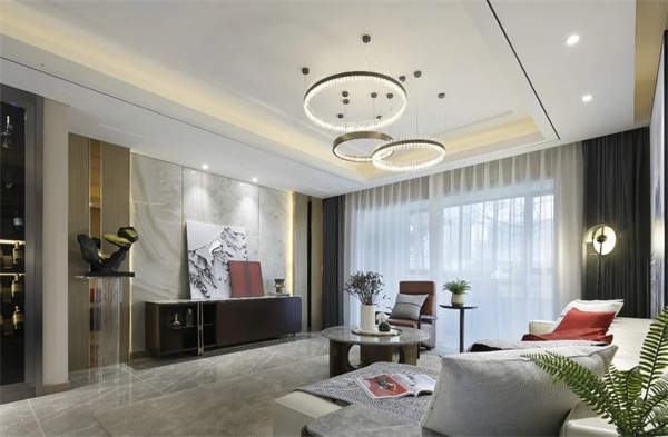 同時,客廳中巧妙融入了現代元素。簡約現代的燈飾和軟裝配飾,讓整個空間更加舒適和實用,也使整個客廳散發著溫暖宜人的氛圍。