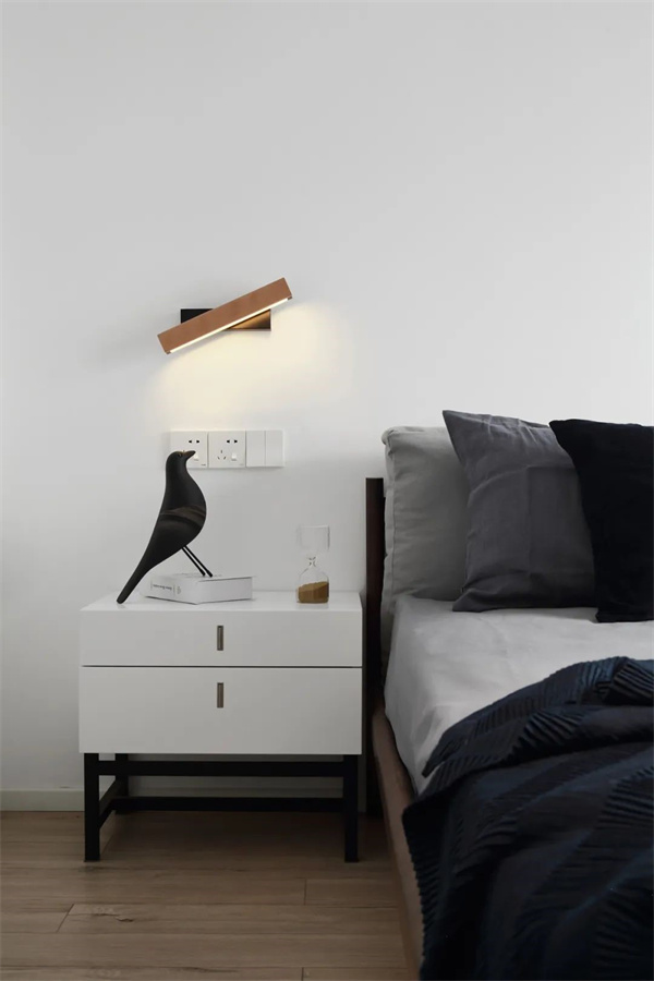 臥室的墻面選擇明亮的白色,增加空間感和提升明亮度,地面采用原木色木質地板,為空間增添溫暖和自然感。床頭柜和衣柜采用簡約的設計,整個臥室營造出一種寧靜和清新的氛圍,為居住者提供舒適和寧靜的休息空間。