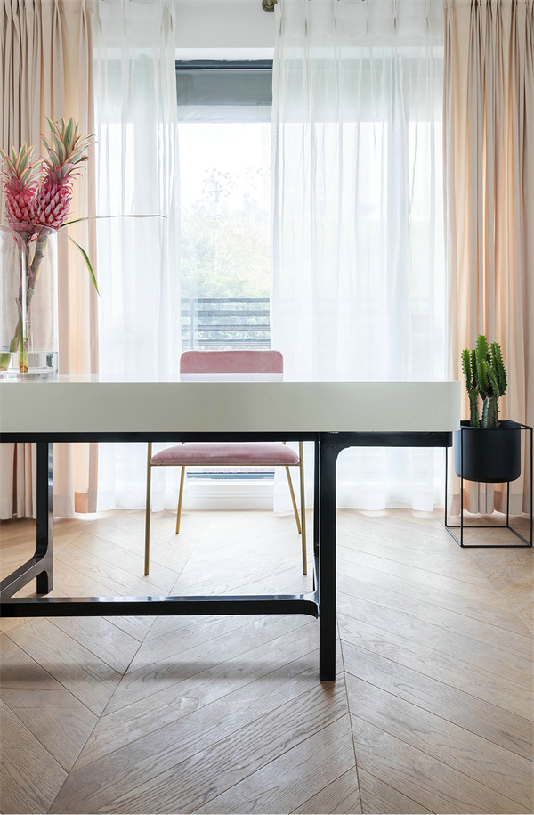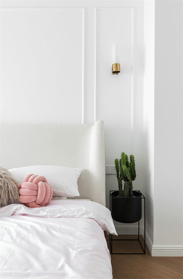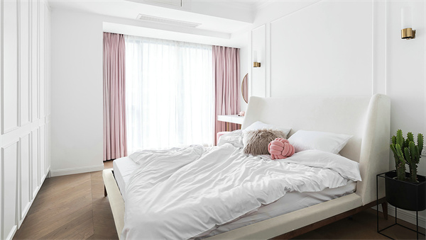 主臥打破了傳統(tǒng)的沉悶感,選擇明亮的白色和粉色組合,搭配原木色地板和綠植,營造出寧靜舒適的氛圍。窗簾選擇透光的材質(zhì),每天清晨都能被溫柔的陽光喚醒,開啟美好的一天。