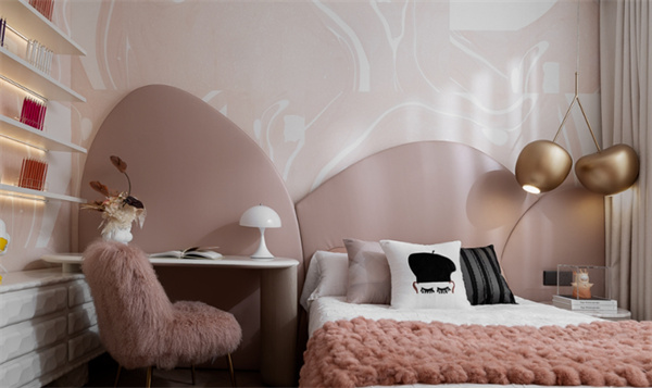 兒童房白色頂面搭配著粉色墻畫,可愛的圖案和色彩讓整個房間充滿童趣和活力。粉色地毯和墻畫相互襯托,呈現出優雅而不失童真的感覺??蓯埏L格的玩具和裝飾品,打造出充滿童趣和驚喜的成長空間。