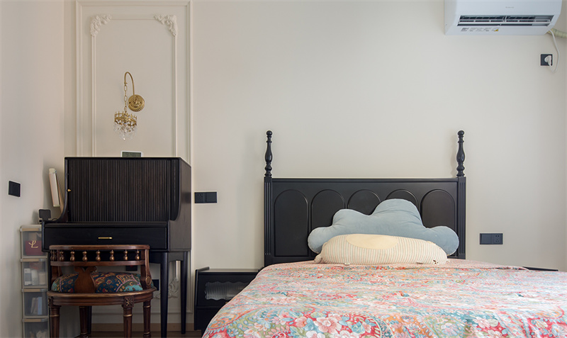 床頭一角的實木梳妝臺形如小鋼琴輕盈靈動,靜置角落裝點臥室,每一處細節(jié)都充滿法式的浪漫與優(yōu)雅。