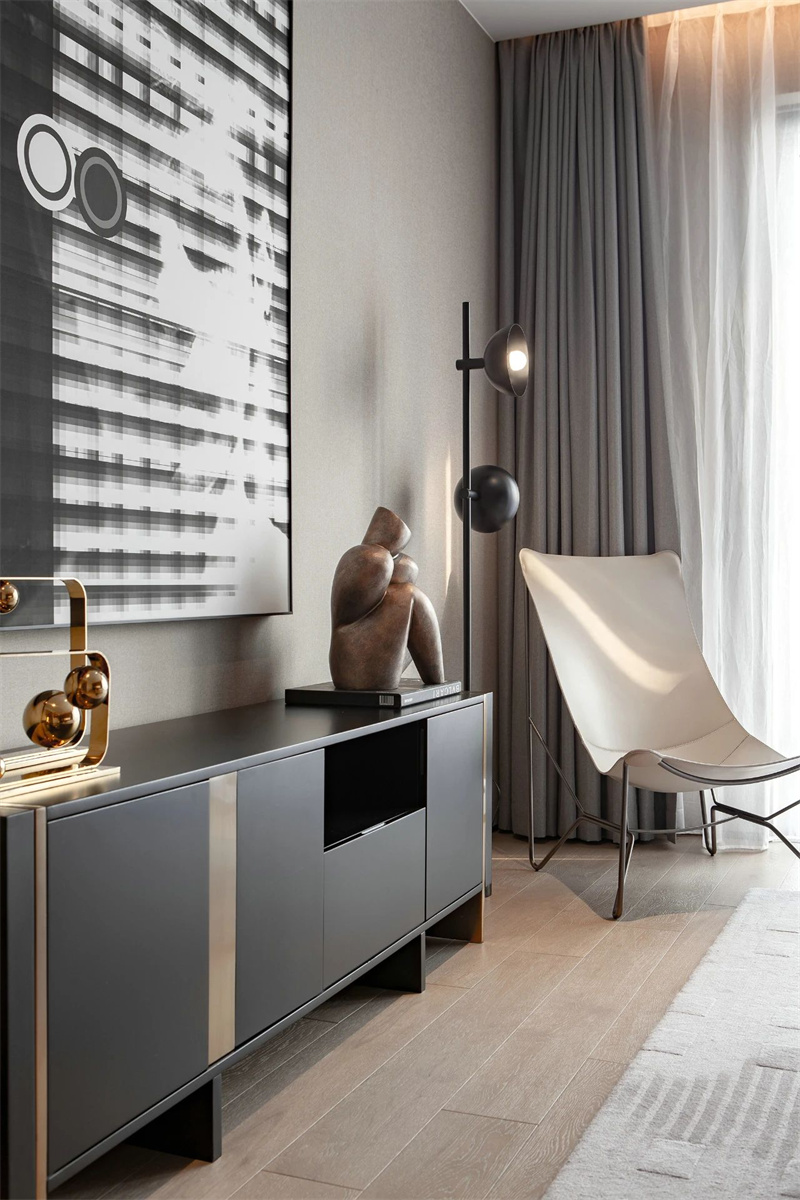 設(shè)計(jì)師將意大利經(jīng)典的設(shè)計(jì)美學(xué)與現(xiàn)代簡約相結(jié)合,通過簡潔的線條、柔和的中性色調(diào),精致的材質(zhì)細(xì)節(jié),營造出一種低調(diào)卻彰顯主人品味的奢華感。