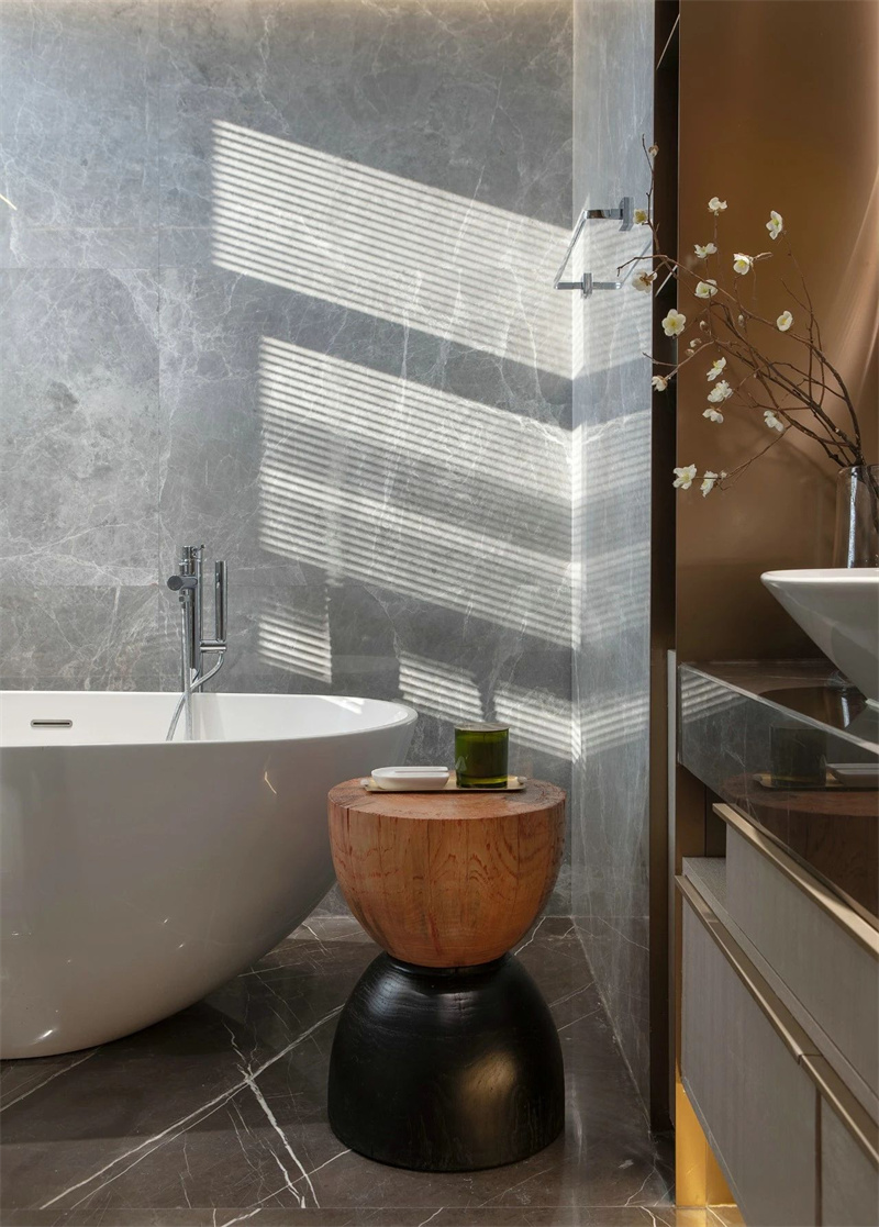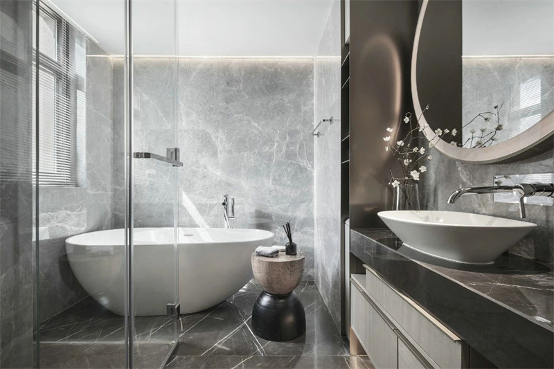 意式輕奢衛(wèi)生間追求精致和典雅。大理石地板和墻面的一體化設(shè)計(jì)營造出高貴的氛圍,獨(dú)特的衛(wèi)浴設(shè)計(jì)和華麗的浴室鏡不僅為其增添了藝術(shù)元素,也為每一次洗漱體驗(yàn)注入了一份奢華與品味。