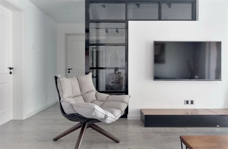 白色的電視墻+壁掛電視機,小面積的電視墻也顯得簡約而大方。