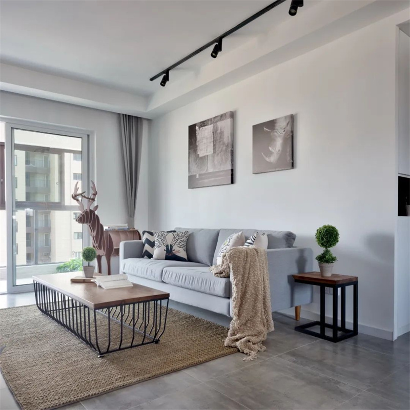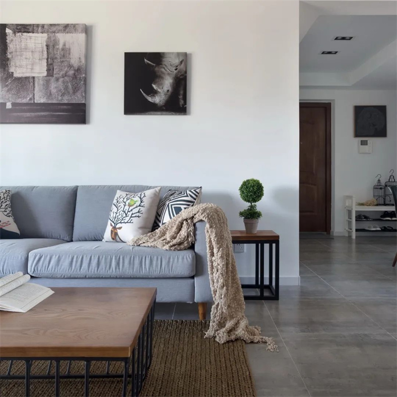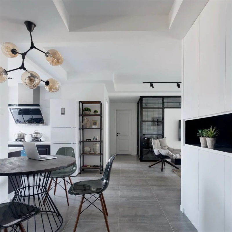 本案以灰色地磚和白色墻面為主要色調,創造了一個清新、溫馨的居住空間。綠植、藤編等大自然的元素也被用來裝飾室內空間,讓整個家更加貼近自然,呈現出一個治愈系之家的感覺。