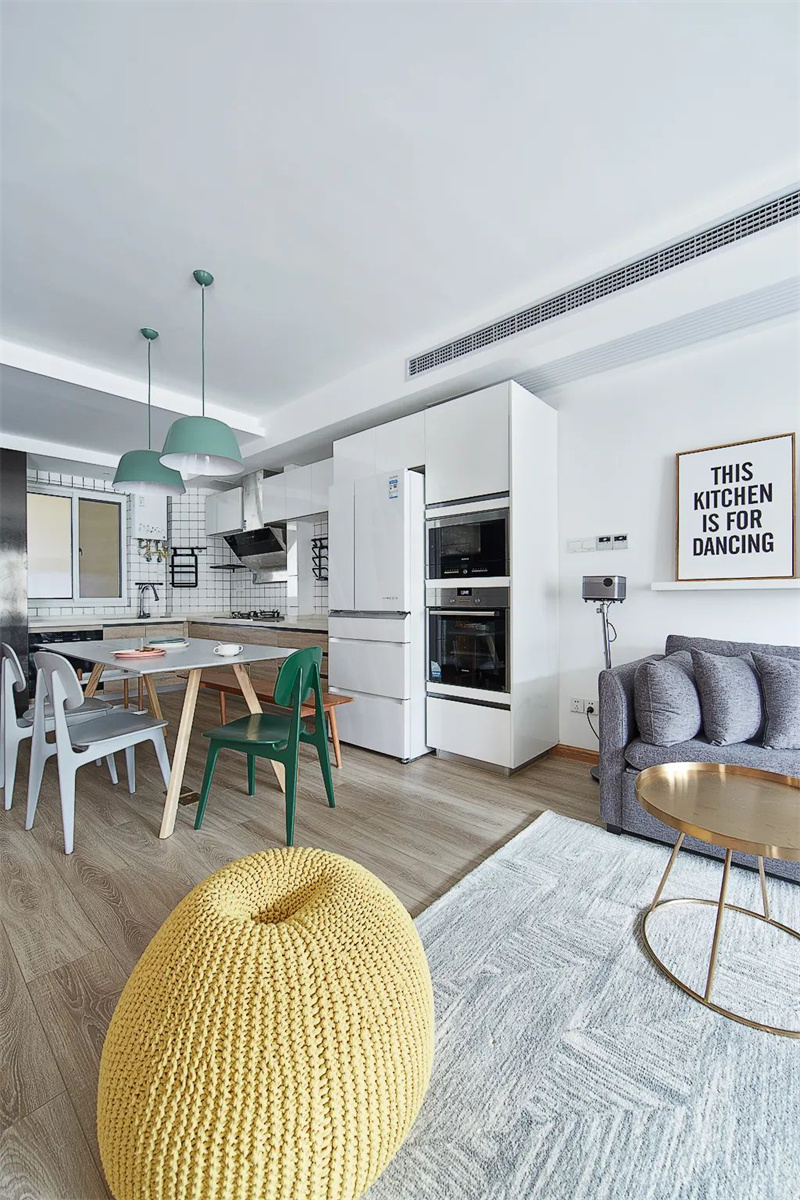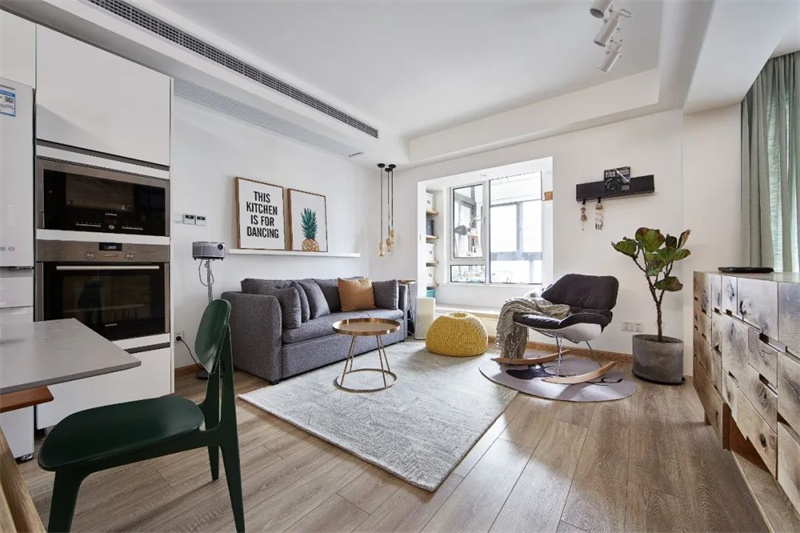 客廳是本案的亮點(diǎn),白色墻壁為空間提供了明亮的背景。客廳的地板是原木色,賦予了房間自然的溫暖感。墻上裝飾著一些抽象的藝術(shù)畫作,為空間帶來些許藝術(shù)氛圍。整個客廳的設(shè)計(jì)強(qiáng)調(diào)了開放感和清晰的線條,讓人感到寬敞和時尚。